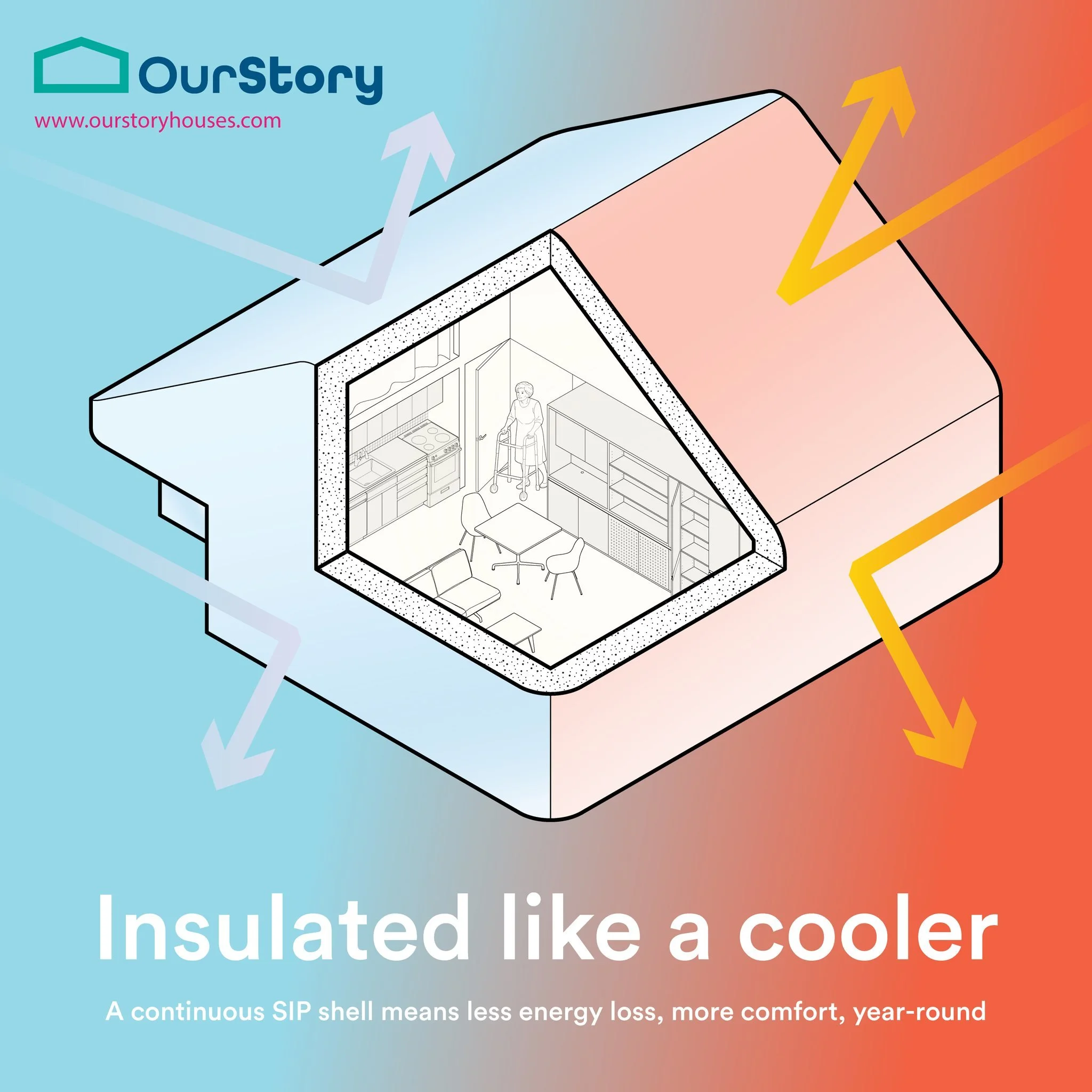 Radically efficient — Prefab SIPs panels provide continuous insulation to reduce air leakage and improve energy efficiency.